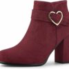 - Round Toe, Block Heel, Heart-Shaped Buckle Decor, Side Zipper Closure, Ankle Boots