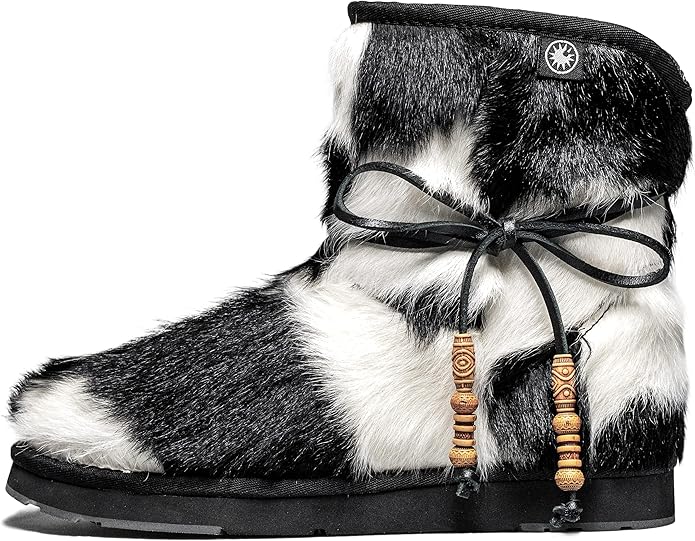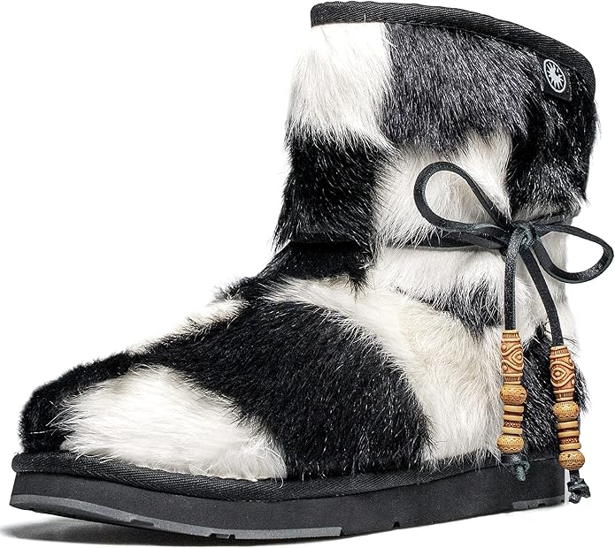 - This iconic sheepskin boot showcases mixed materials for a modern feel
