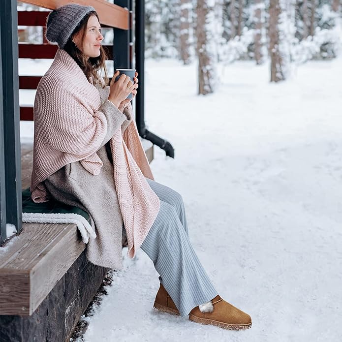 - [Material]These women’s snow boots are made of high-quality cashmere upper, soft fur lining, and sturdy stitching, which can keep your feet warm perfectly. The TPR outsole made the booties lightweight, we hope to give you both the light and the warm feelings