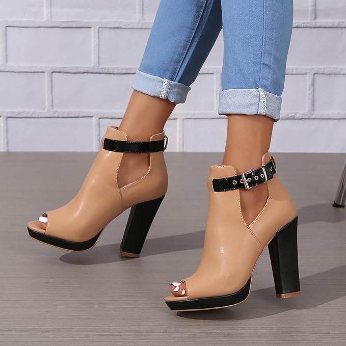 - These open toe booties feature microfiber leather perforated upper, anti-slip rubber out sole, soft footbed bottom, high quality wooden heel. The women’s boots suitable for wearing all around the year. It’s definitely a pair of shoes that every girl must have in her shoe closet.