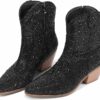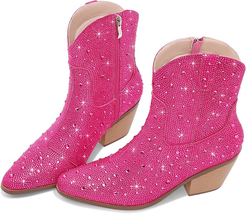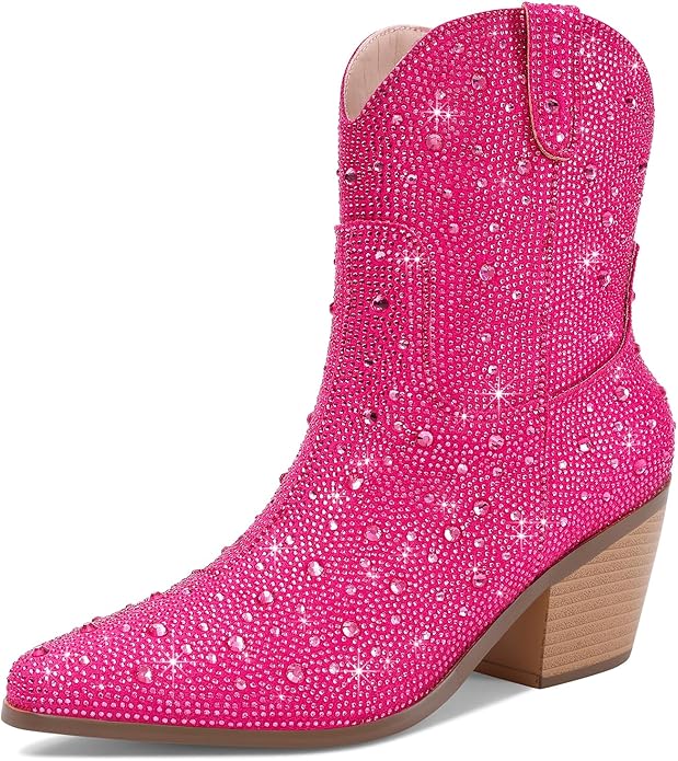- Material:Our cowboy boots are composed of rhinestones and polyurethane externally. These ankle boots are lined with soft and cozy foam for more comfortable wear.