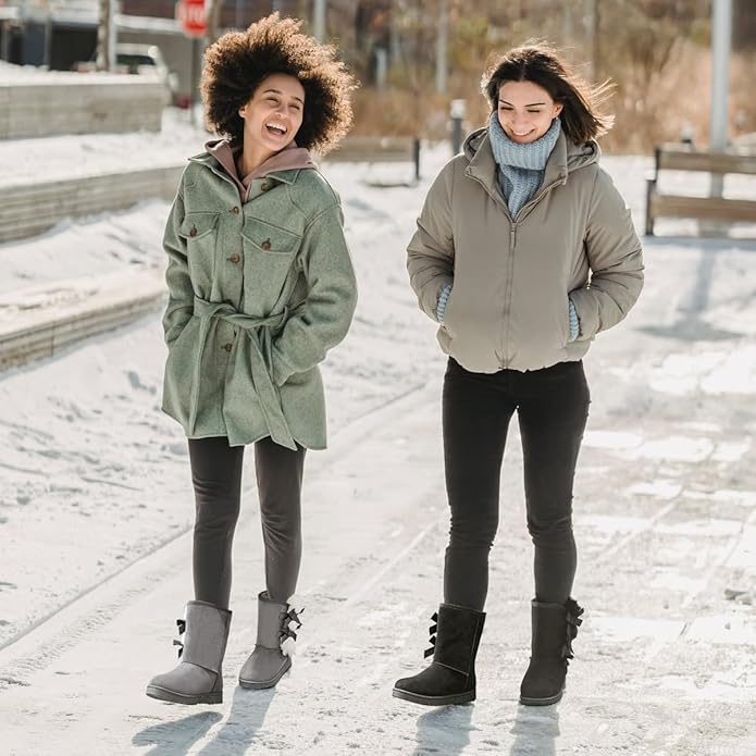 - [Material]These women’s snow boots are made of high-quality cashmere upper, soft fur lining, and sturdy stitching, which can keep your feet warm perfectly. The TPR outsole made the booties lightweight, we hope to give you both the light and the warm feelings