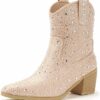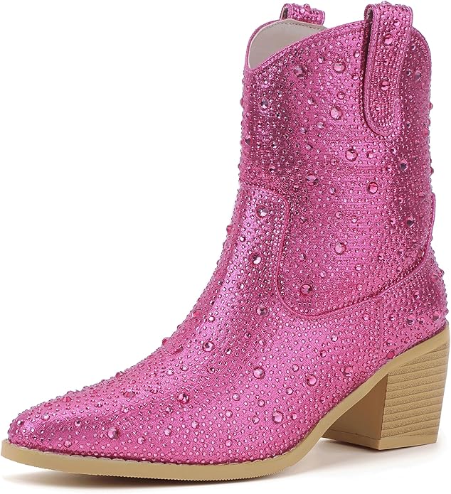 - STYLISH GLITTER BOOTS: Ankle boots showcase a classic cowboy silhouette, elevated to a new level of glamour with an intricate arrangement of rhinestones, carefully selected for its sparkle and bling, blend western cowgirl style with modern fashion trends