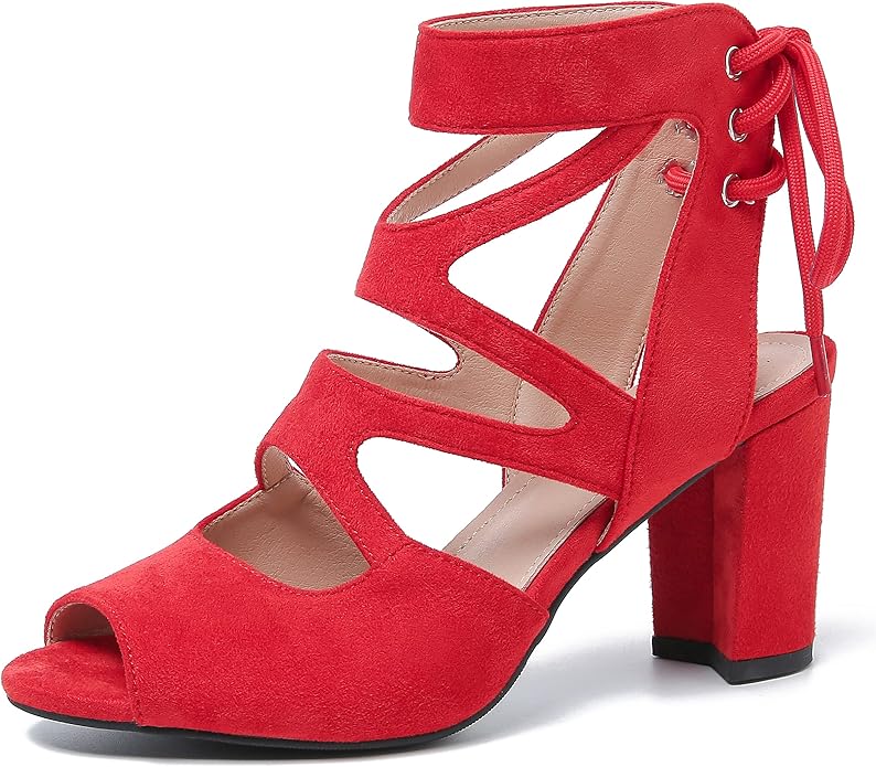 - Features: Open toe, Cut out, Lace up, Mid High Block Heel, Chunky Heel.