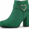 - Ankle Boots, Heel Booties, Chunky Heel, Ruffle Flower Decor