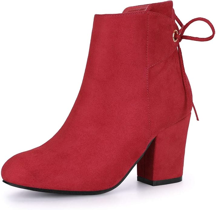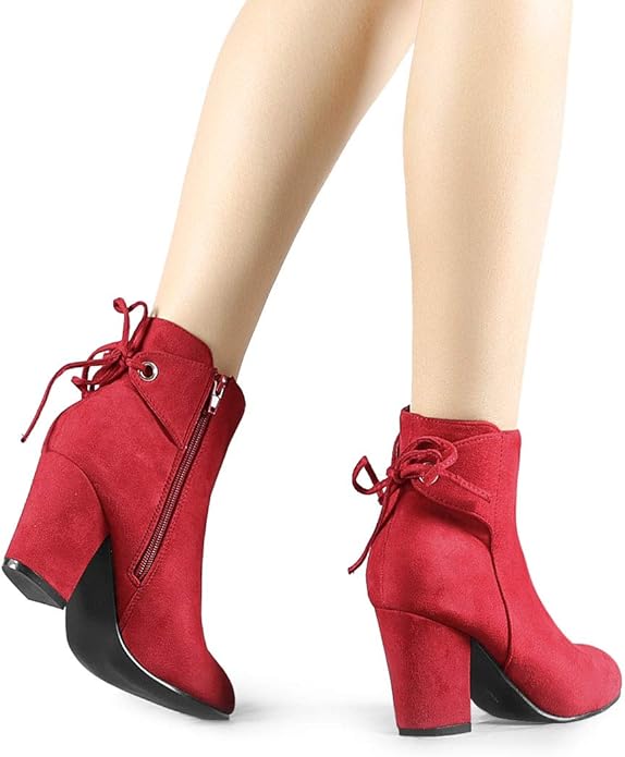 - Lace Up Back, Side Zipper, Round Toe, Blocked Heel, Soft Lined