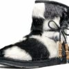- This iconic sheepskin boot showcases mixed materials for a modern feel